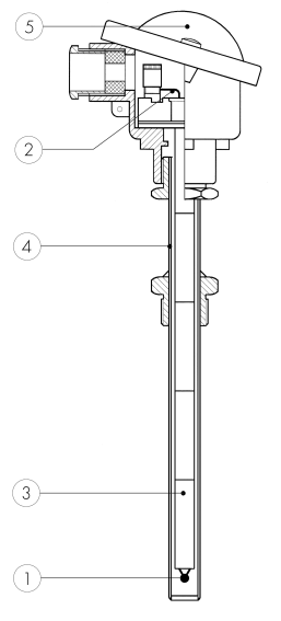 In questo tipo di realizzazione il giunto di misura è parte integrante della guaina di protezione e di conseguenza il tempo di risposta è abbastanza ridotto, l’esecuzione dello stesso è conforme alle norme ASTM-E-235. Consigliato in presenza di alte pressioni (fino a 3500Kg/cm2). - giunto caldo isolato