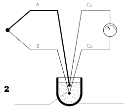 Il giunto di misura o giunto caldo è la zona in cui i due conduttori della termocoppia sono uniti tra loro; essendo la sua dimensione di dimensioni ridotte, possiamo considerare la misura con le termocoppie di tipo puntiforme. L’esecuzione di questa giunzione deve essere fatta in modo tale da non presentare tensioni meccaniche sui due conduttori (specialmente per quanto riguarda le termocoppie a base di metallo nobile) in quanto queste, una volta in temperatura, pregiudicherebbero il corretto funzionamento della termocoppia. - fili della termocoppia