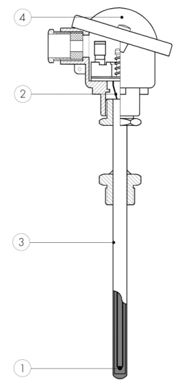 In condizioni particolari è opportuno ricoprire la guaina con un ulteriore protezione (pozzetto termometrico). - testa di connessione
