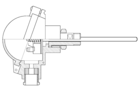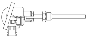 Spring-loaded thermocouple for measurements into metallic plates, the fixing is realized by a threaded connection with bajonet fitting; because of the bended output cable, this probe is particulary indicated where are present space problems.