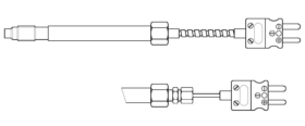 Spring-loaded thermocouples indicated for measurements into metallic plates; the fixing is by threaded connection with bayonet fitting.